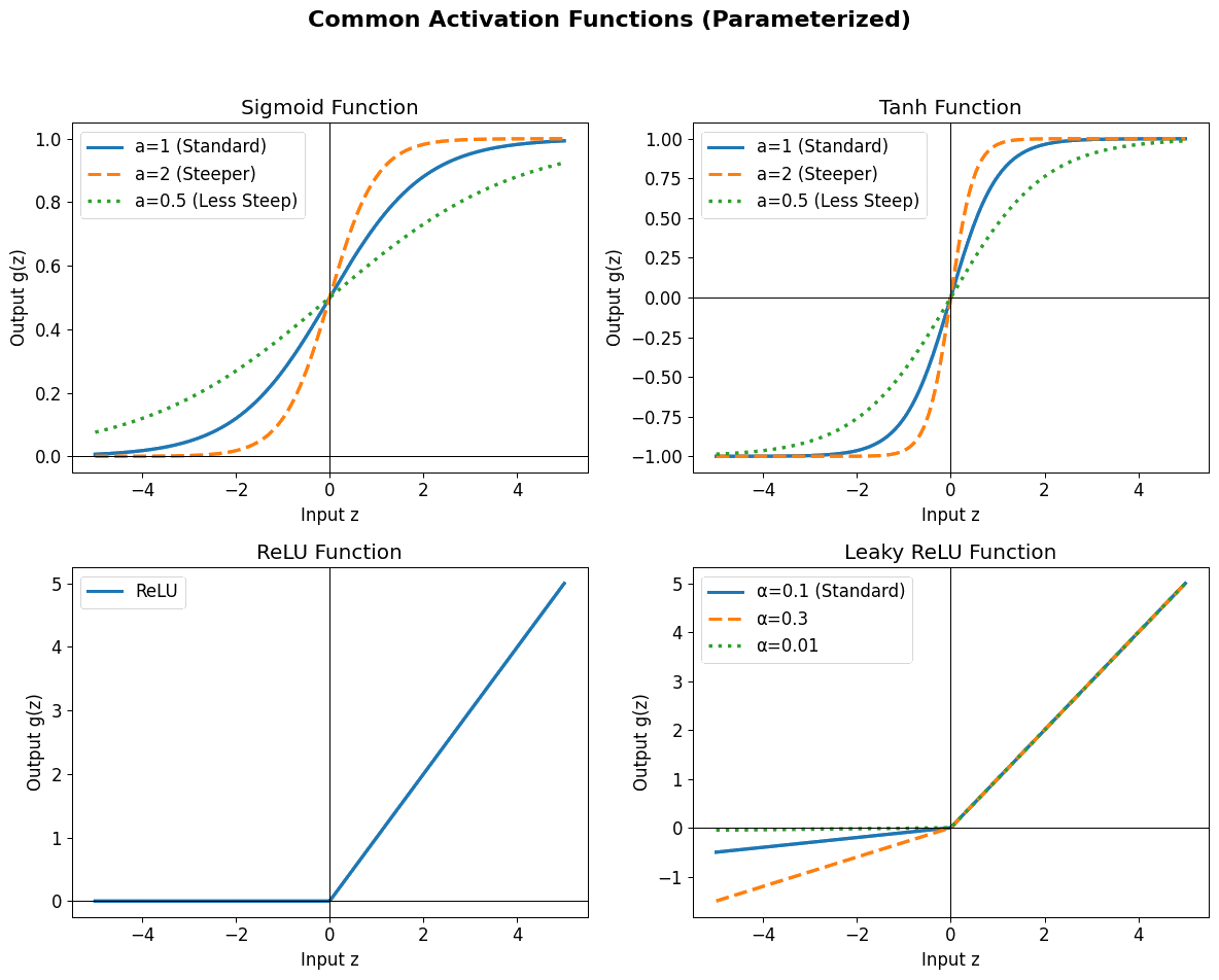 Some common activation functions include: