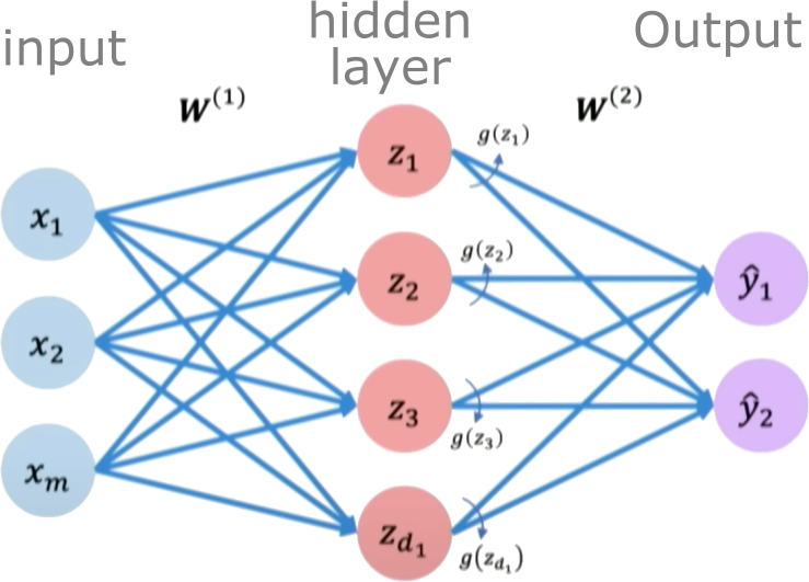 (Here, \(W^{(2)}\) is a \(1 \times N_h\) weight matrix, and \(b^{(2)}\) is a scalar bias). - Final output \(\hat{y}\): \(\hat{y} = z^{(2)}\)